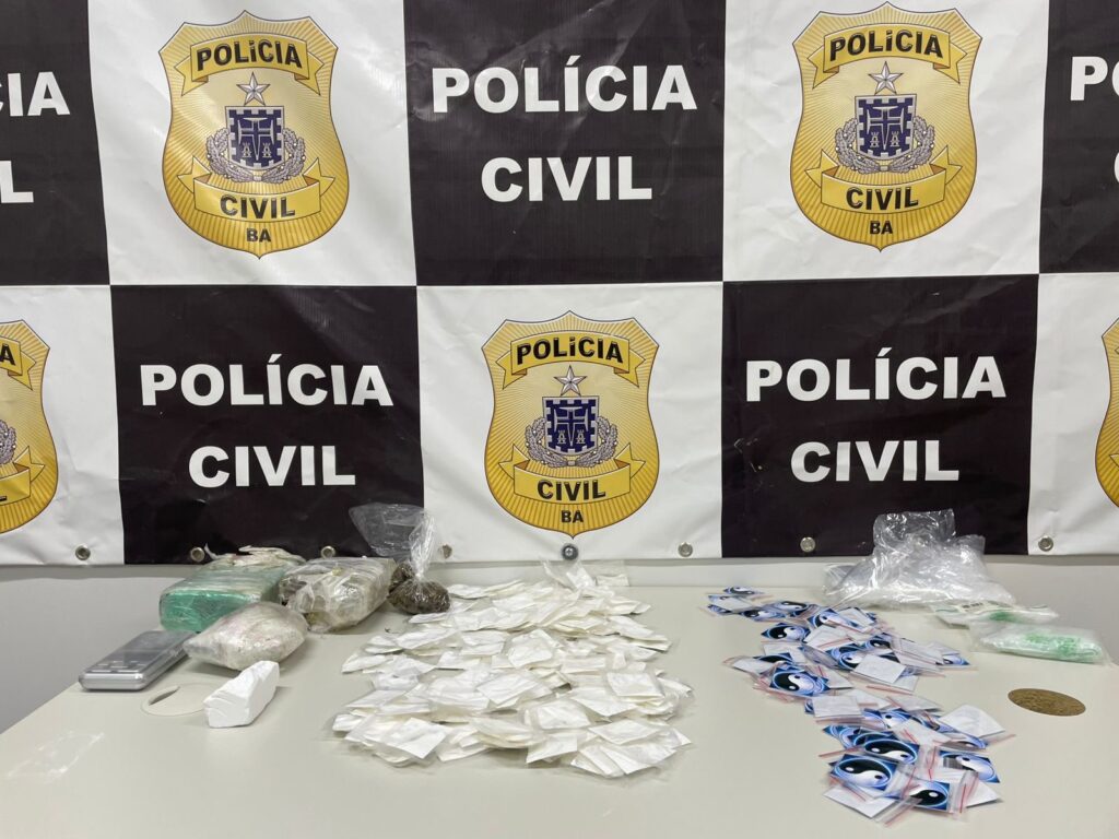 Na mesma ação, a Polícia Civil de Cansanção buscou ainda por outros dois homens, que conseguiram escapar. Na casa de E.S.L foram apreendidos tabletes de maconha, 196 papelotes de cocaína, balanças de precisão e uma motocicleta.