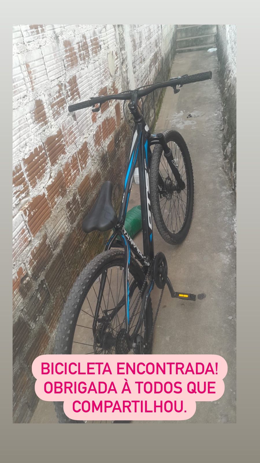 Por conta da repercussão, uma pessoa viu a bicicleta em uma residência, na noite de segunda. O dono do imóvel teria informado que achou o objeto na rua, e que teria guardado para ser entregue. Esse rapaz deve ser ouvido.