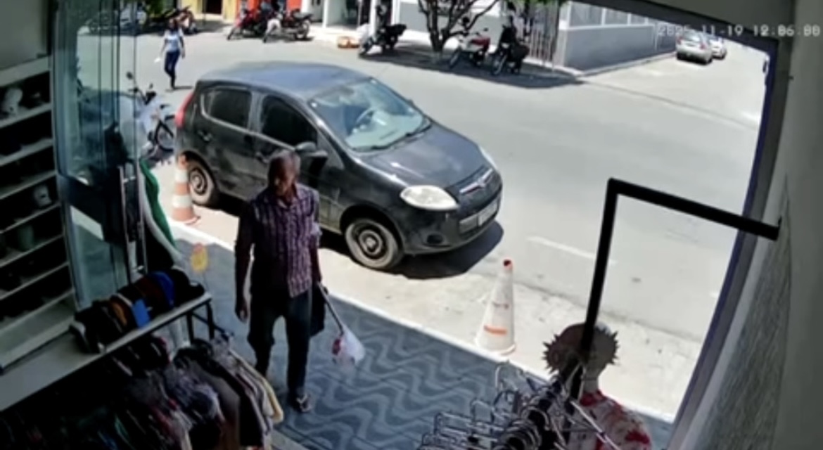 Um idoso foi filmado furtando um boné que estava exposto em uma loja, no Centro de Queimadas, nesta quarta-feira (19/11). O caso foi registrado por câmeras de segurança.