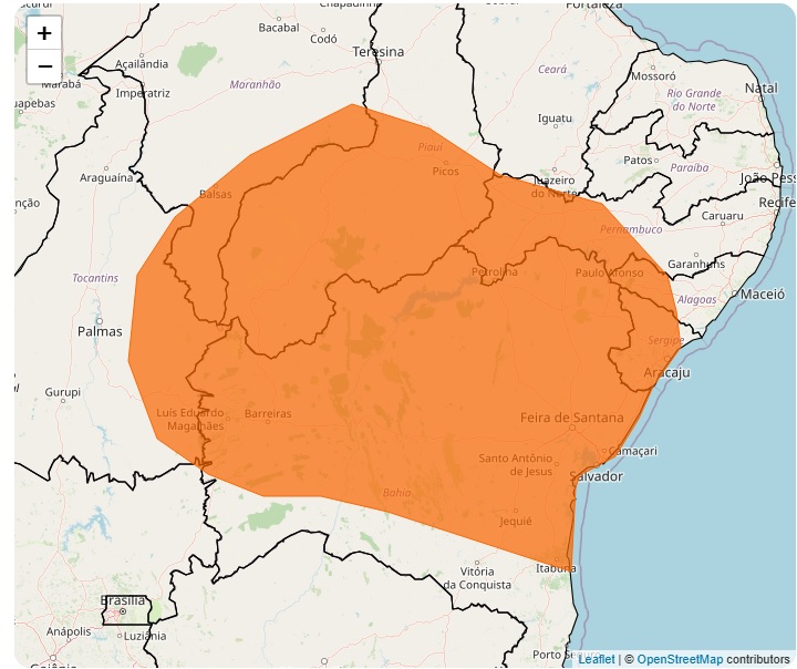 O aviso laranja apresenta grau de perigo, nos parâmetros do Inmet. Municípios de todas as regiões do estado estão em alerta, a exemplo do Centro Sul, Vale São-Franciscano, Nordeste, Centro Norte, Sul, Metropolitana de Salvador e Extremo Oeste.