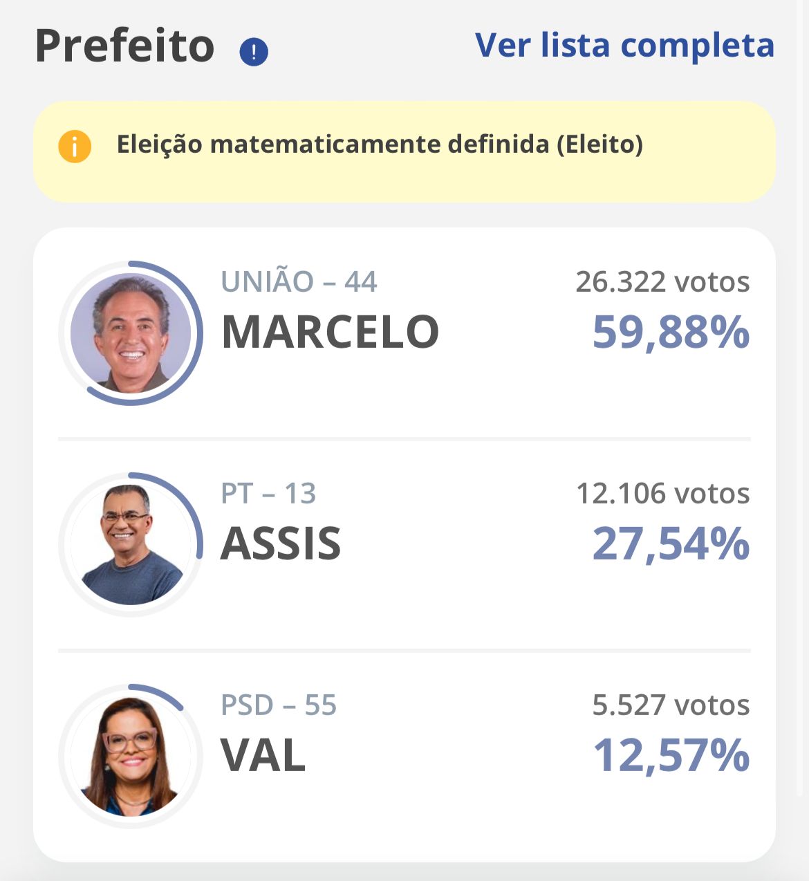Marcelo Araújo (União Brasil) foi reeleito prefeito de Conceição de Coité neste domingo (6). Ele obteve 59,85% dos votos válidos e seguirá no comando do executivo.