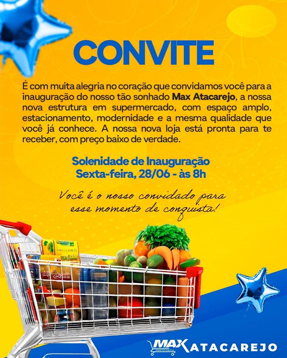 Uma nova opção de compras será inaugurada nesta sexta-feira (28) em Santaluz. Trata-se do Max Atakarejo, que fica em frente ao Centro de Abastecimento.