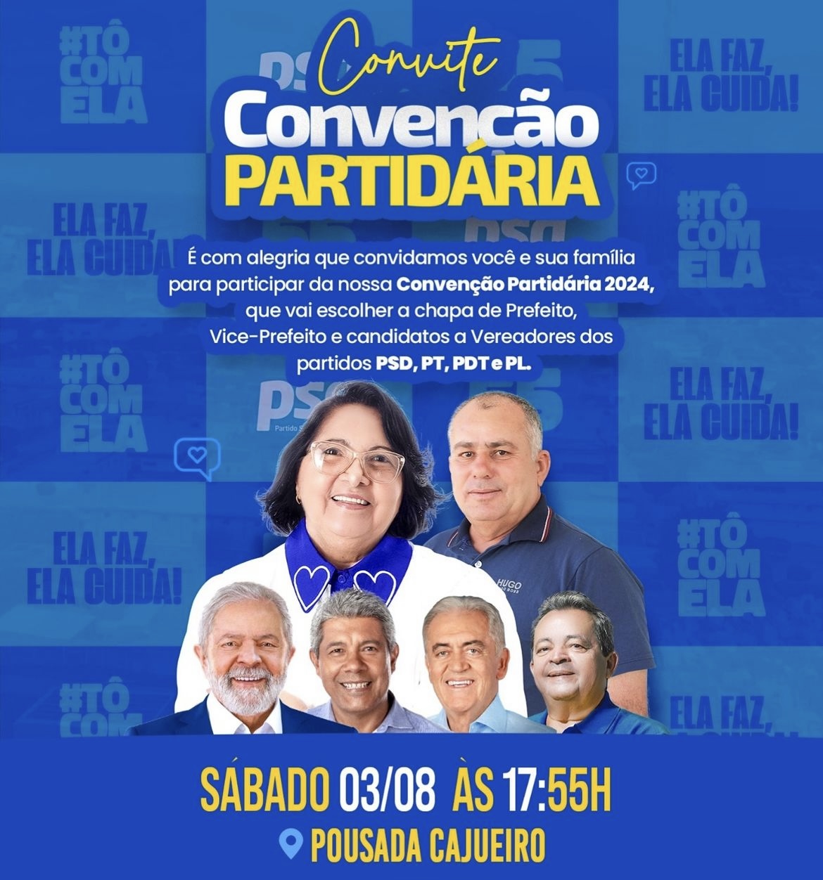 O evento, que promete reunir centenas de apoiadores e pre-candidatos a vereadores, acontecerá na Pousada Cajueiro, no dia 3 de agosto, às 17h55. Eliete comanda a federação PSD, PT, PDT e PL.