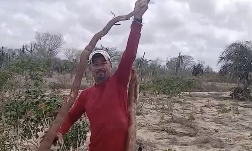 Mandioca gigante em Queimadas: agricultor acha raiz de quase 2,4 metros