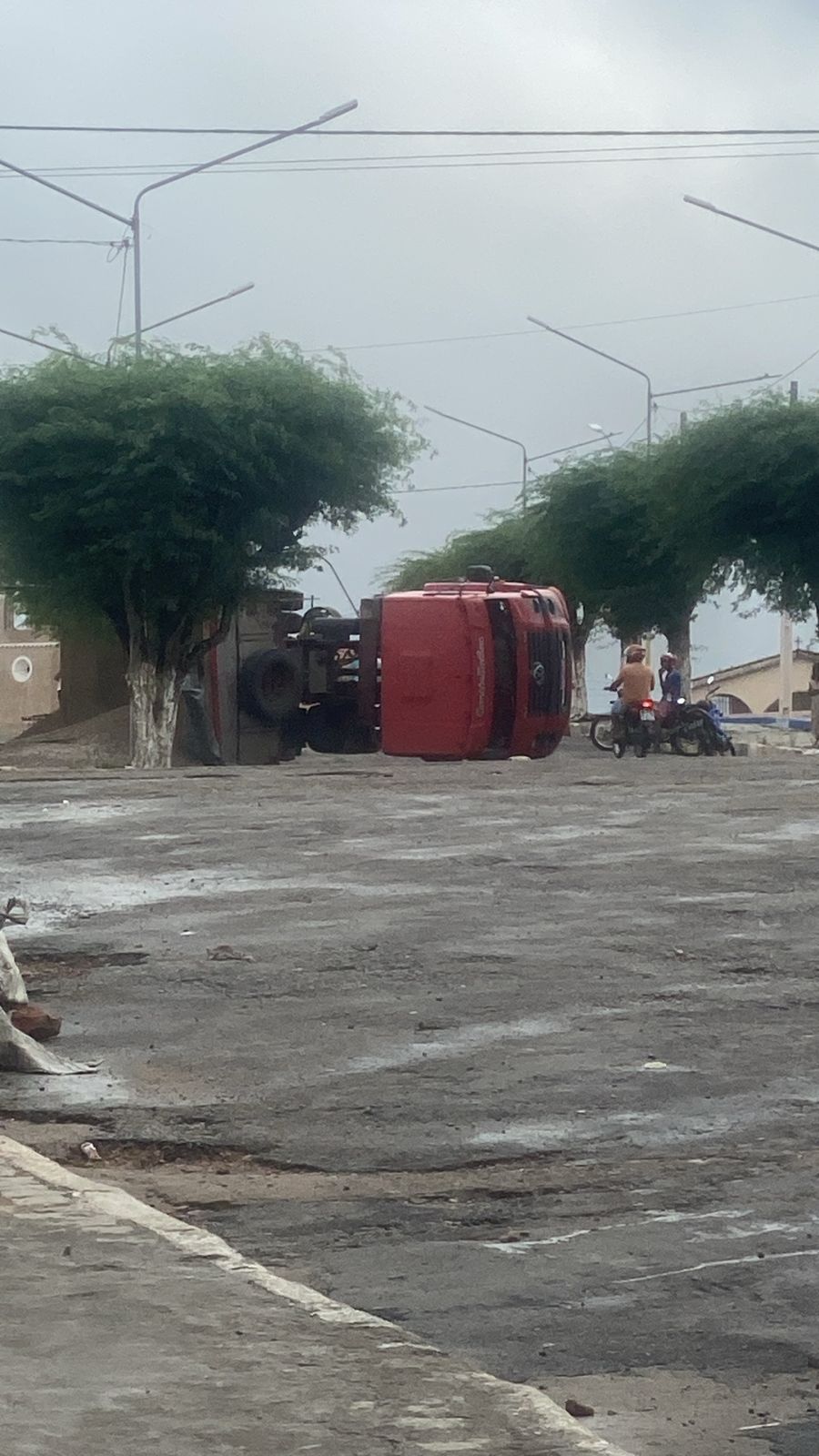 Segundo testemunhas, o acidente aconteceu no local onde acontecerá a Lavagem de Queimadas. O material carregado pelo veículo, inclusive, era da obra.